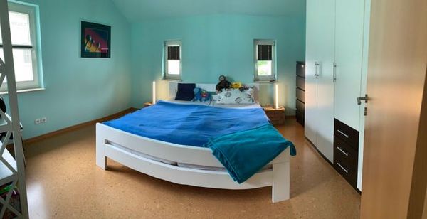 Im Obergeschoss befinden sich die Schlafzimmer. 1. Schlafzimmer mit Doppelbett ( 1,80 x 2,00 m ), 2. Schlafzimmer mit Futonbett ( 1,60 x 2,00 m ) beide Betten mit getrennten Matratzen.