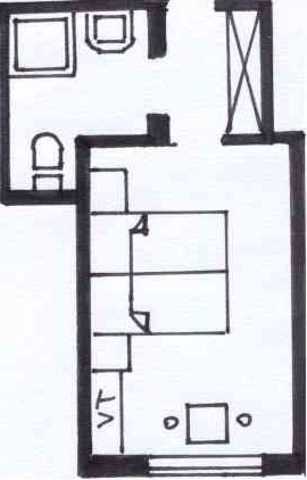 Raumaufteilung: 1 Schlafraum (1 Doppelbett), 1 Badezimmer mit Dusche.