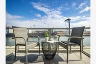 Es empfängt Sie im 1. Obergeschoss das sehr attraktive 3-Zimmer Appartement ? Hafenspitze2- mit einer großzügigen Wohnfläche von 73qm. Von der Loggia blicken Sie auch über Industriehafen, wo es immer Interessantes zu beobachten gibt. Lichtdurchflutet begrüßt Sie der hochwertig eingerichtete Wohn-Essbereich mit bodentiefen Fensterfronten. Eine offene, voll ausgestattete Küchenzeile ist integriert und bietet Herd, Backofen, Kühlschrank mit Gefrierfach, Spülmaschine sowie Kleingeräte wie Kaffeemaschine, Wasserkocher usw. Zur technischen Unterhaltung gehören ein internetfähiges TV-Gerät mit Hotelmodus sowie Internet Radio. WLAN nutzen Sie kostenfrei.