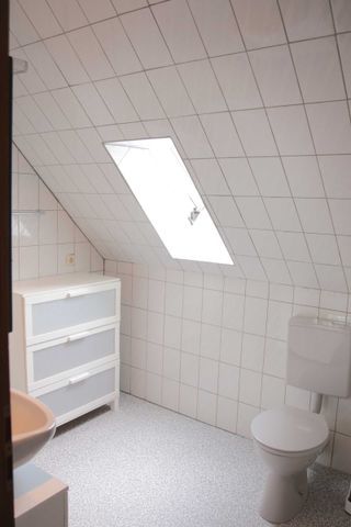 Das Badezimmer ist mit einer Dusche, WC und Waschbecken sowie ausreichend Ablagemöglichkeiten ausgestattet.