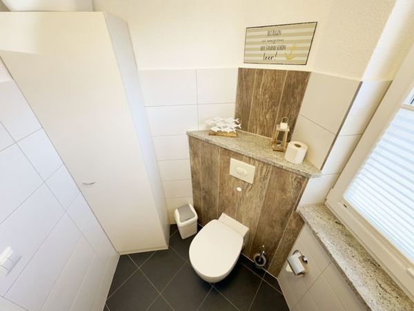 Die Doppelhaushälfte Meeresbrise ist mit Ihren ca. 75 m² großzügig geschnitten und bietet ausreichend Platz für bis zu 5 Personen. Die Unterkunft (Nichtraucher) ist auf 2 Ebenen verteilt und verfügt zusätzlich über eine Terrasse mit Bestuhlung, Sonnenschirm, Strandkorb und einem Weber Kugelgrill. Im Erdgeschoss verfügt die Doppelhaushälfte Meeresbrise über einen großen Wohn/Essbereich mit einem Esstisch für 5 Personen, eine gemütliche Couch, Smart-TV mit Sky (Auswahl von Sport, Film, Dokumentation), Blu-Ray-Player, DAB-Radio und direkten Zugang über die Schiebetür auf die Terrasse. Auch im Urlaub müssen Sie nicht auf einen Internetanschluss (WLAN) verzichten. Die in dem Wohnbereich integrierte Küchenzeile verfügt über einen Backofen mit Umluft, Ceranfeld, Mikrowelle, Kühlschrank mit Gefrierfach, Geschirrspüler, Spüle, Kaffeemaschine, Toaster, Wasserkocher, Eierkocher, Brotschneidemaschine, Bosch Tassimo Maschine, Heißluftfriteuse und weitere diverse Küchenutensilien. Für die kältere Jahreszeit sorgt ein Kaminofen für gemütliche Abende. Ein Gäste-WC befindet sich im Erdgeschoss. Über die Treppe erreichen Sie das Obergeschoss, wo sich 2 Schlafzimmer, ein Duschbad und ein Wirtschaftsraum mit Waschtrockner, Bügelbrett und Bügeleisen befinden. Das 1. Schlafzimmer verfügt über ein Doppelbett (1,80m x 2,00m), Smart-TV, Kleiderschrank & Kommode sowie einen Relax-Sessel. Das 2. Schlafzimmer ist mit einem Einzelbett (0,90m x 2,00m), einem Tandembett (Einzelbett mit Ausziehfunktion je 0,90m x 2,00m), Flachbild-TV, einer Kommode und einem Kleiderschrank ausgestattet. Das großzügig gestaltete Bad verfügt über eine Glasrunddusche, Handtuchtrockner, Waschtisch, Spiegelschrank, Fön und WC. Das gesamte Haus ist mit einer Fußbodenheizung ausgestattet und mit Granit (außer die Schlafzimmer) gefliest. Alle Fenster können durch elektrische Außenrollos abgedunkelt werden, rundherum sind Insektenschutzgitter installiert. Ein PKW-Stellplatz befindet sich direkt am Haus sowie eine Ladestation für Elektrofahrzeuge (kostenpflichtig). Die überdachte Fahrradunterstellmöglichkeit für max. 4 Fahrräder befindet sich am Gartenhaus. Auf der Wiese ist eine Wäschespinne für Sie aufgestellt. Von der Terrasse mit Strandkorb aus, können Sie den Tag bei einem Gläschen ausklingen lassen und wunderschöne Sonnenuntergänge in Richtung Hafen genießen. An kühleren Tagen steht Ihnen eine neue Fasssauna zur Verfügung. Für unsere kleinen Gästen stehen 1 Kinderbett sowie 1 Hochstuhl inklusive zur Verfügung. Auf dem eingezäunten Grundstück sind max. 2 Haustiere (kniehoch, keine Katzen) gegen eine Extragebühr erlaubt. Die Erstausstattung eines Wäschepaketes (komplette Bettwäsche, 1 Duschhandtuch, 1 kleines Handtuch) können Sie bis 14 Tage vor Anreise gegen einen Aufpreis dazu buchen oder durch Eigenes ergänzen. Ab 2 gebuchten Paketen erhalten Sie einmalig 1 Geschirrhandtuch und 1 Duschvorleger hinzu.