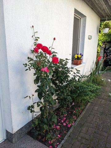 Zur alleinigen Nutzung steht Ihnen eine 15 m² große Terrasse mit Tisch und Stühlen zur Verfügung. Genutzt werden können außerdem Liegewiese, Gartenmöbel und Holzkohlegrill.