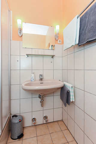 - Baden im Doppelzimmer Makrele in der Hotel-Pension Altes Siel Urlaub in Bensersiel