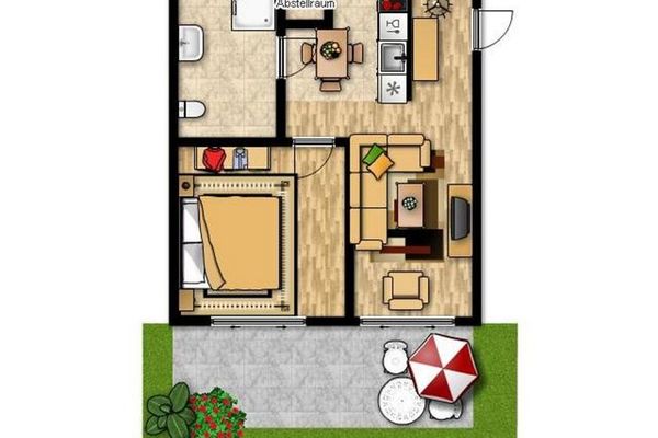 Diese gemütliche 2-Zimmer-Ferienwohnung im Erdgeschoss mit separatem Eingang bietet auf ca. 40qm Wohnfläche für bis zu 3 Gäste eine seniorengerechte Urlaubsmöglichkeit.