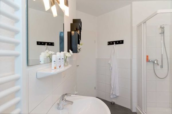 Das Badezimmer ist mit Dusche, WC und Waschmaschine ausgestattet. Vom sonnigen Balkon aus können Sie entspannte Stunden im Freien genießen. Ein eigener PKW-Stellplatz steht Ihnen ebenfalls zur Verfügung. Die Wohnung ist eine Nichtraucherunterkunft, Haustiere sind nicht erlaubt.