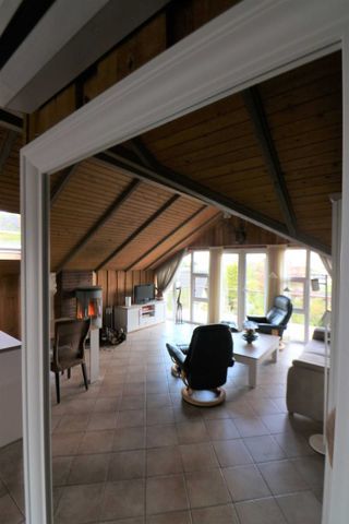 1 Wohnzimmer mit Kaminofen, Sitzecke und Essbereich