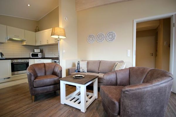 Ihre 2-Zimmer Ferienwohnung 65RB11 Sonne befindet sich im 2. Obergeschoss und ist ca. 50 qm groß. Die Nichtraucherwohnung verfügt über einen Balkon in Richtung Osten und ist für bis zu 2 Personen gut geeignet. Neben dem gemütlichen Wohnbereich mit Zugang zum Balkon, gehört eine Sitzecke, ein Essbereich, Flachbild TV sowie WLAN. Im Schlafzimmer erwartet Sie ein Doppelbett, ein zusätzlicher TV, ein Kleiderschrank sowie ein weiterer Zugang zum Balkon. Zudem können Sie eine voll ausgestattete und im Wohnbereich integrierte Küchenzeile mit Geschirrspüler, Backofen, Wasserkocher, Toaster, Kaffeemaschine sowie umfangreiches Küchengeschirr nutzen. Das moderne Badezimmer erwartet Sie mit Waschtisch, WC und Dusche. Einen Parkplatz sowie eine Fahrradunterstellmöglichkeit befinden sich direkt am Objekt.
