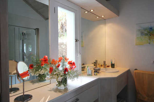 Das Casa Almendro verfügt über ein stilvoll eingerichtetes Schlafzimmer mit großem Bett (160 x 200) und Meerblick sowie Zugang zur vorderen Terrasse. Das Schlafzimmer kann verdunkelt werden.