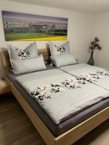 Die Ferienwohnung wurde 2020 saniert und verfügt über zwei Schalfzimmer mit einem großen Doppelbett und eines davon besitzt zusätzlich ein Einzelbett, so dass 5 Schlafplätze vorhanden sind. Der Wohn- und Eßbereich ist mit einer Sitzecke, einem Esstisch, einer Couch und einem Fernseher ausgestattet. Die Kücher verfügt über einen E-Herd, Mikrowelle, Toaster, Wasserkocher, Kaffeemaschine, Kühlschrank, Spülmaschine sowie Geschirr, Besteck und Töpfe. In dem Tageslicht-Bad mit Dusche befindet sich außerdem eine Waschmaschine.