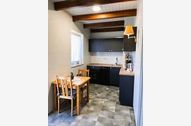 Herd mit Backofen, Kaffeemaschine, Wasserkocher, Kühlschrank, Spülmaschine, Sitzgruppe; voll ausgestattet mit Geschirr und Kochutensilien