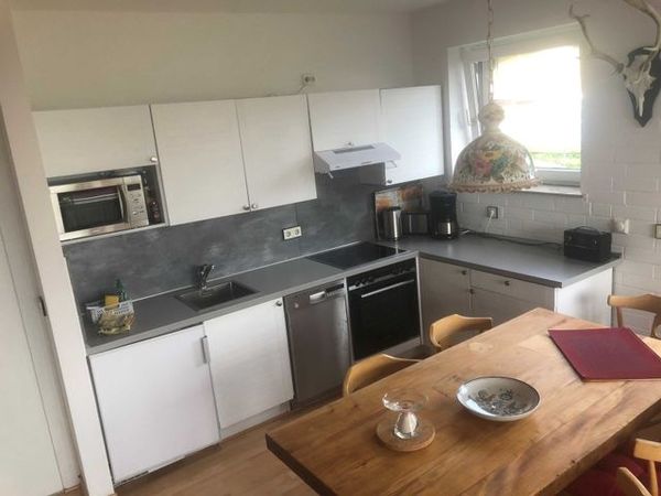 Die Ferienwohnung Lenas Loft ist hell und freundlich eingerichtet und verfügt über 1 Wohnzimmer mit integriertem Essbereich, einer gemütlichen Sitzecke sowie einen TV-Flachbildschirm. Von hier aus führt eine steile Treppe auf die Galerie. Hier findet man einen kleinen Bereich für Kinder sowie eine Sitzgelegenheit. Eine offene Küche mit Mikrowelle, Spülmaschine, Kühlschrank und ein neuer Backofen samt Induktionskochfeld steht für Sie bereit. Die Ferienwohnung ist ausgestattet mit 2 Schlafzimmern, wobei in einem ein Doppelbett und in dem anderen 2 Einzelbetten stehen. Das Badezimmer verfügt über DU/WC und ein Außenfenster. Der Wohnbereich ist mit Laminat ausgelegt, die Galerie und der Schlafbereich mit Teppichboden. WLAN ist vorhanden.