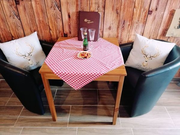 Das ca 30 m2 große Appartement "Alm" besteht aus einem modernem Bad mit einer ebenerdigen großen Regendusche und Fußbodenheizung sowie einem großem Zimmer mit neuer kleinen Küchenzeile mit Kühlschrank, Cerankochfeld, Mikrowelle, Geschirr, Besteck.