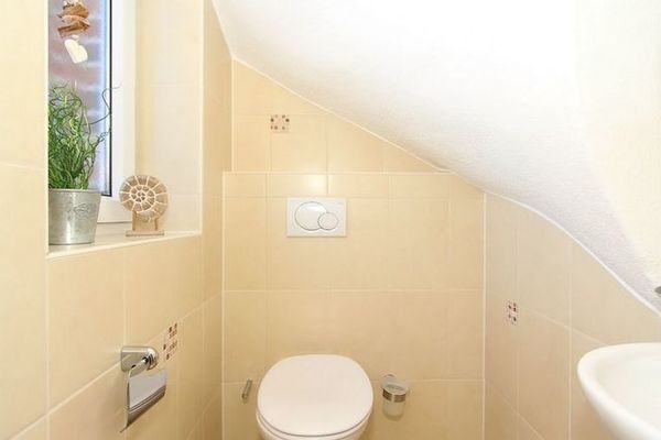 Das Gäste-WC mit Fenster befindet sich ebenfalls im Erdgeschoss.