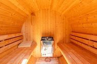 Die Fass-Sauna, welche sich auf dem hauseigenen Grundstück zwischen Haus 1 und 1a befindet, kann sowohl von den Gästen von Haus 1 als auch von den Gäste von Haus 1A kostenfrei genutzt werden. Gleichzeitig trennt die Sauna beide Grundstücke voneinander.