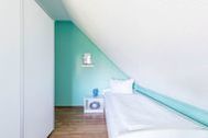 Für 2 weitere Gäste steht im Dachgeschoss, welches Sie über eine offene Holztreppe erreichen, ein zusätzliches Gäste-/ Kinderzimmer mit zwei getrennten Einzelbetten (je 90x200cm) zur Verfügung.