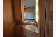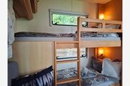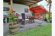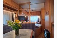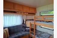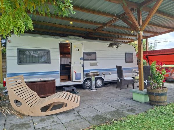 Der Wohnwagen verfügt über Schlafplätze für bis zu 6 Personen (max. 4 Erwachsene). Direkt vor dem Wohnwagen gibt es eine kleine Terasse mit einer Hollywoodschauckel.
