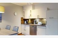 Küche: Moderne Küchenzeile, Ceran-Herd, Mikrowelle mit Back- und Grillfunktion, Spülmaschine, Kühlschrank mit Gefrierfach, Kaffeemaschine, Toaster, Wasserkocher