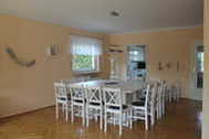 eingerichtet ist. An dem großen Esstisch finden gut 12 Personen Platz.