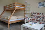 Zimmer mit einem Doppelstockbett ausgestattet, wobei hier die untere