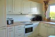 ausgestattete Küche mit Geschirrspüler, Herd, Backofen, Mikrowelle,