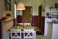 Charmante farbenfrohe 2-Raum-Ferienwohnung im Obergeschoß. Wohnzimmer mit Sitzecke, Eßtisch, Küchenzeile mit 4-Platten-Herd, Kühlschrank, Backofen, Toaster, Kaffemachine, Wasserkocher. Separates Schlafzimmer mit Doppelbett. Dusche & WC. Föhn vorhanden. Wohnung ist über Aussentreppe zu erreichen. Garten mit Sitzecke, Gartenmöbel und Fahrradunterstellmögichkeit.