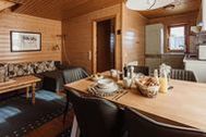 Die Doppelhaushälfte in Holzbauweise verfügt über drei Zimmer auf einer Wohnfläche von rund 65 m² und bietet Platz für bis zu sechs Personen. Im Erdgeschoss befindet sich ein großzügiger Wohn- und Schlafbereich mit Sitzecke, separatem Essplatz, SAT-TV sowie einer vollständig ausgestatteten Kochnische mit Spülmaschine und Mikrowelle. Ergänzt wird die Ebene durch einen Abstellraum und ein separates Gäste-WC. Im Dachgeschoss liegen zwei Schlafzimmer mit Doppelbetten sowie ein Duschbad/WC. Die Treppe ist mit einer Kindersicherung versehen.
