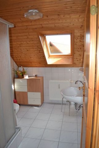 Eine sonnig ausgerichtete Terrasse lädt zum Aufenthalt im Freien ein. Das Haus liegt in unmittelbarer Nähe zum Waldrand und zeichnet sich durch eine ruhige Lage aus. Gleichzeitig befinden sich ein Bäckerwagen, ein Restaurant und ein Spielplatz in der Umgebung.