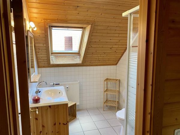 Sie wohnen in einem Ferienhaus für bis zu 5 Personen auf ca. 65 m². Im Erdgeschoss finden Sie einen geräumigen Wohnraum mit bequemer Couch, separatem Essplatz, SAT-TV, HiFi-Anlage mit CD-Player, eine voll ausgestattete Einbauküche mit Mikrowelle, Abstellraum und ein separates Gäste-WC. Im Dachgeschoss gibt es ein Schlafzimmer mit Doppelbett, ein Schlafzimmer mit zwei getrennten Betten (davon eines mit Ausziehfunktion) sowie ein Duschbad/WC. Außen ist ein zusätzlich absperrbarer Abstellraum. Die große, befestigte Terrasse ist weitestgehend überdacht. Aussenstellplatz für PKW.