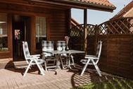 Sie wohnen in einer 3-Zimmer-Holzdoppelhaushälfte für bis zu 4 Personen auf ca. 65 m². Im Erdgeschoss finden sie einen geräumigen Wohnraum mit bequemer Couchgarnitur, separater Essplatz, SAT-TV mt Empfang sky, eine voll ausgestattete Küchenzeile mit Geschirrspüler, Abstellraum und ein separates Gäste-WC. Im Dachgeschoss ein Schlafzimmer mit zwei separaten Betten, ein Schlafzimmer mit Doppelbett sowie ein Duschbad/WC. Außen ist ein zusätzlich absperrbarer Abstellraum. Die große befestigte Terrasse ist weitgehend überdacht. PKW-Außenstellplatz in der Anlage.