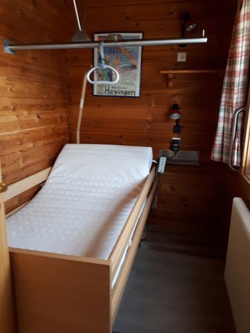 - ein Schlafzimmer mit Einzelbett-Pflegebett mit elektrischem Deckenlifter