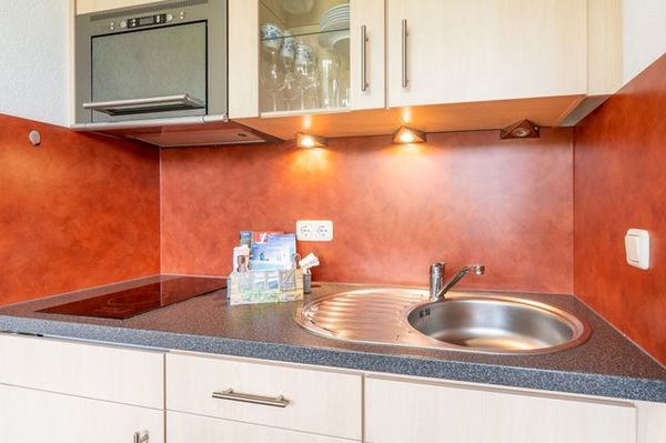 Dusche/WC, Bettwäsche, Handtücher, Balkon, Nichtraucher, Waschmaschine, Haartrockner, Mikrowelle, Kühlschrank, Heizung, WLAN, Schwimmbecken, TV - Flachbild, Küche (offen), Tiere nicht erlaubt, Wohn/Schlafraum komb., Schlafsofa, Kaffeemaschine, Wasserkocher, Sonnenschutz, Verdunkelungsmöglichkeit
