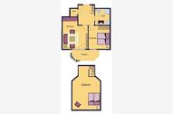 - Wohnzimmer: gemütliche Couch mit Schlaffunktion (getrennt ausziehbar für 2 Personen), ein Sessel, Tisch-Kombination, Farb-TV (Satellitenempfang), DVD-Player, Schrank, Leselampe