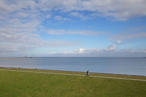 Was für ein Ausblick! Aus der 4. Etage genießen Sie einen spektakulären Meerblick auf den Schifffahrtsweg, die Kugelbake und den Hafen. Sie suchen eine günstige und maritime Ferienwohnung mit separatem Schlafzimmer in bester Lage? Der faszinierende Ausblick lässt keine Langeweile aufkommen. Kreuzfahrtschiffe, Kutter und Segelschiffe reihen sich wie eine Perlenschnur aneinander und sind zum Greifen nah. Genießen Sie Ihren Urlaub in erster Reihe direkt am Deich. Ferienwohnung Grimmershörn 56 bietet einen maritimen Flair. Während Sie auf dem neuen Sofa verweilen, können Sie den abwechslungsreichen Ausblick auf die vorbeifahrenden Schiffe bestaunen. Dank Flachbildfernseher müssen Sie auch im Urlaub nicht auf Ihre Lieblingsserie oder die Sportschau verzichten. Darüber hinaus gewährleistet das separate Schlafzimmer mit 2 Einzelbetten, dass Sie sich auch im Schlaf erholen. Auch vom möblierten Balkon genießen Sie den traumhaften Blick auf die Elbe. Zur Ferienwohnung gehört ein KFZ-Stellplatz. Das Haus Grimmershörn bietet die perfekte Ausgangslage für einen erlebnisreichen Cuxhaven Urlaub. Erkunden Sie die Umgebung und lernen Sie Cuxhavens Vielfalt kennen. Unternehmen Sie eine Schiffstour zur Hochseeinsel Helgoland oder eine Wattwanderung zur Insel Neuwerk. Radeln Sie über den Elbradweg zum Alten Land oder besuchen Sie die Alte Liebe. Auch ein Spaziergang durch den nahe gelegenen Kurpark empfiehlt sich.