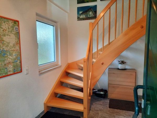 Die Ferienwohnung befindet sich in ruhiger Lage in der Ortslage Kleinkoschen und hat einen großen Garten. Die Ausstattung ist modern und zweckmäßig. Der kombinierte Wohn-Schlafraum ist mit offener Küche, Doppelbett, Sitzmöglichkeit, Essbereich und TV eingerichtet, er befindet sich mit dem Bad (DU/WC) im Obergeschoss, der Schlafraum ist in der unteren Etage. Der Schlafraum ist mit Teppichboden ausgestattet, der Wohn-Schlafraum mit Küche und Essbereich ist mit Laminat ausgelegt.