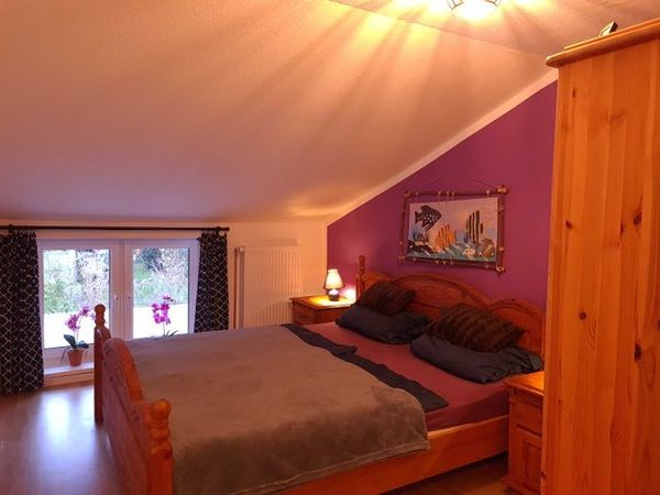 - lila Zimmer im OG mit 1 Doppelbett (180x200cm)