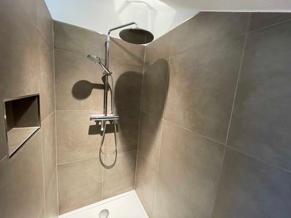 In dem hellen und ansprechend eingerichteten Bad findest du eine große Regenschauerdusche und einen stylischen Handtuchheizkörper. Im komfortabel eingerichteten Schlafzimmer kommen auch große Leute nicht zu kurz. Kuschel dich in dem 180x200cm breitem Bett unter die großen Bettdecken mit 155x220cm und genieße die Nachtruhe.