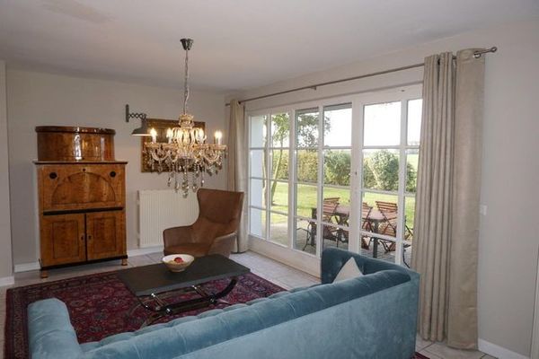 Das hochwertig ausgestattete 6-Personen-Appartement bietet Ihnen eine geschmackvolle Möblierung im gehobenen Landhausstil Im Erdgeschoss des reetgedeckten Landhauses "Wiesengrund" befindet sich die Ferienwohnung 1 mit großer Terrasse und uneingeschränktem Blick auf die umliegenden Wiesen und Felder. Das stilvoll eingerichtete Appartement verfügt über einen Wohnbereich mit gemütlicher Sitzgarnitur und technischer Ausstattung wie TV-Flatscreen und kostenloses W-LAN. Die mit viel Liebe zum Detail ausgewählte Möblierung im gehobenen Landhausstil verleiht der Ferienwohnung einen besonderen Charme. Große Fenster gewähren einen freien Blick in die Natur. Vom Wohnbereich aus haben Sie Zugang zu einer Terrasse mit Garten. Direkt hinter dem Garten beginnen die Felder, so dass Sie in dieser Landidylle Ruhe und Erholung finden. Die voll ausgestattete Küche mit Spülmaschine, Backofen, Kaffeemaschine und Toaster bietet einen gemütlichen Essbereich für 4-6 Personen. Die Ferienwohung ist ausgestattet mit zwei Schlafzimmern mit jeweils einem komfortablen Doppelbett sowie einem Schrankbett im Wohnbereich für 2 weitere Personen. Angrenzend an die Schlafzimmer befindet sich ein Bad mit Dusche. Eine zusätzliche Wellness-Oase ist durch ein Saunahaus mit Ruhebereich sowie Außenterrasse mit Sonnenliegen auf dem Lerchenhof mit der Fertigstellung Ende 2022 entstanden.