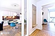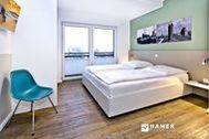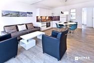 Sehr schöne, moderne 3-Raum-Wohnung bis 4 Pers. (62m²), 1.Etage, 2 Schlafzimmer mit Doppelbetten und Außenjalousien, Wohnzimmer mit großer Küchenzeile (Back., Mikrow., Geschirrspüler) 2xSAT-TV, Blue-Ray, CD-Radio, WC u. ebenerdige Dusche, W-LAN kostenlos, 1 großer Balkon (süd), Personenaufzug, reservierter Pkw-Stellplatz hinter dem Haus, keine Haustiere erlaubt, Nichtraucher.