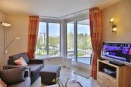 2-Raum-Wohnung auf ca. 40m², 3. Etage, komplett ausgestattet bis 4 Pers., 1 Schlafzimmer mit 2 Einzelbetten (0,90m x 2,00m), 1 kombiniertes Wohn/Schlafzimmer mit Schlafcouch, Sat-TV, kostenloses W-Lan, CD-Radio, Blue-Ray-Player, Küchenzeile mit 2 Pl.-Herd, Mikrowelle und Geschirrspüler, Dusche /WC (neu in 2020), Flur, Balkon (west), keine Haustiere, Tiefgarage #306.