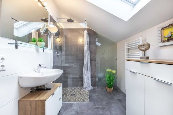 HInweis Fotos: Die Einrichtung des Wohnzimmers und Badezimmers kann in Farbe und Dekoration leicht von den dargestellten Bildern abweichen.
