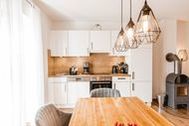 Die Wohnung Wörpe befindet sich im OG unseres Haupthauses und bietet auf 80 qm Platz für bis zu sechs Personen. Aufgeteilt ist die Wohnung in zwei Schlafzimmer (1 SZ mit Doppelbett und 1 SZ mit zwei Einzelbetten, die sich jeweils zu einem vollständigen Doppelbett ausziehen lassen), einem großen Wohn/Essbereich mit komplett ausgestatteter Küchenzeile, einem Bad mit Tageslicht und einem Abstellraum.