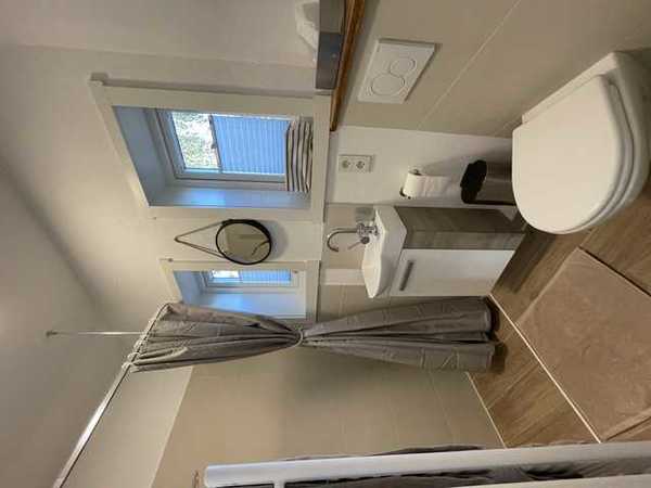 Das kleine Badezimmer hier verfügt sogar über eine Dusche.
