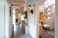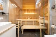 Dieses luxuriöse Appartement im Dachgeschoss bietet Ihnen auf 73qm alles, was Sie für einen erholsamen Urlaub an der Ostsee benötigen. Die sichtbare Holzbalkendecke, kombiniert mit einer exklusiven Inneneinrichtung, versprüht eine edle Wohnatmosphäre und lädt bis zu vier Personen zum Wohlfühlen und Entspannten ein. Neben dem Design-Sofa sorgt ein Smart-TV und ein zweiseitiger Gaskamin (per Fernbedienung steuerbar) für relaxte Stunden am Meer. An den offenen Wohn-Ess-Bereich schließt sich die noble Küche mit Premium-Elektro-Geräten (Backofen, Induktionskochfeld mit integriertem Dunstabzug, Mikrowelle und Kühl-Gefrierkombination) an. Ein Highlight dieses Appartements ist das Masterbad mit seiner Glasdusche und einer Finnischen Sauna, die über einen Bluetooth Musikplayer verfügt. Nutzen Sie die Vorzüge eines weiteren Badezimmers mit Regendusche - ob für sich selbst oder für Ihre Gäste. Für ein erholsames Schlafvergnügen sorgen die komfortablen Boxspringdoppelbetten (1,80m x 2,00m) in den beiden Schlafzimmern, die darüber hinaus über eingebaute Spiegelschränke und Flat-TVs verfügen. Vom kleineren Balkon, der nach Osten ausgerichtet ist, lässt sich der Sonnenaufgang über den Dächern Seebad Ahlbecks beobachten, während Sie die Nachmittage bequem auf dem Süd-West-Balkon in der Sonne verbringen können. Kostenfreies W-Lan und ein Stellplatz in der hauseigenen Tiefgarage runden Ihren einzigartigen Urlaub auf der Insel Usedom ab. Ihre Fahrräder können Sie gern im Appartement zugehörigen Abstellraum im Nachbarhaus unterbringen. ***Bitte beachten Sie, dass trotz Barrierefreiheit im Badezimmer und vorhandenem Fahrstuhl einige Treppen vom Hauseingang (in Haus 2) zur Wohnung zu überwinden sind.*** In diesen 2021 errichteten Häusern trifft Helligkeit auf Moderne und bietet Ihnen in seinen stilvoll eingerichteten Zwei- bis Drei-Zimmer Appartements Komfort auf höchster Ebene. Die offen gestalteten Wohn-Ess-Bereiche überzeugen durch ein stylisches Ambiente und ihr großzügiges Raumkonzept. Die teilweise mit Kochinseln ausgestatteten Küchen integrieren sich perfekt in den ebenso schlichten wie modernen Wohnraum. Alle Appartements verfügen über zwei Bäder oder ein Bad und ein zusätzliches Gäste-WC. Um Ihre Auszeit am Meer zusätzlich zu verschönern, wurden alle Appartements mit Gaskamin und Finnischer Sauna ausgestattet. Genießen Sie von den großzügigen Balkonen und Terrassen den Ausblick auf die parkähnliche Grünanlage oder verbringen Sie Ihren Abend auf dem frei zur Verfügung stehenden Grillplatz mit Sitzecke und Grill. Ein kostenloser PKW-Stellplatz in der Tiefgarage (Einfahrtshöhe 1,95m, Anfahrt über die Straße Kieferngrund Höhe Hausnummer 17) gehört ebenso zum Komfort dieser Appartement-Häuser wie kostenfreies W-Lan. Für E-Autos steht am Objekt eine E-Ladesäule mit 2 Ladeplätzen (gesamt 22 kW) auf dem Grundstück kostenpflichtig zur Verfügung. Eine Waschmaschine und ein Trockner können Sie gegen Gebühr über die kostenlose App WeWash nutzen.