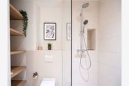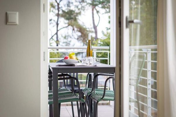 Die Ostsee rauscht durch die großen, offenen Fenster. Der Blick vom Balkon in die gleißende Morgensonne gibt den Blick auf viel Grün und ein bisschen Blau frei. Frühstücken unter freiem Himmel mit einer salzigen Brise in der Nase so können Urlaubstage immer beginnen. Die 57 Quadratmeter Ihres kleinen Urlaubsparadieses für zwei Personen und ein Kleinkind (im Kinderreisebett) sind modern und stylisch eingerichtet. Ein offener und lichtdurchfluteter Wohn-Essbereich lädt zum Entspannen und Erholen ein. Liegt man auf dem bequemen Sofa, weiß man gar nicht, wohin man schauen soll: auf den Elektrokamin oder den großen Flat-TV. Auch lesen, dösen oder kuscheln lässt es sich auf dem Sofa bestens. Alles ist in Weiß und dezenten Pastelltönen gehalten. Da fallen die Design-Stühle des Esstisches ganz besonders auf. Sie setzen mit ihrem Petrolton einen angenehmen Farbakzent, der sich in den Sofakissen widerspiegelt. Gleich neben dem Esstisch schließt sich die offene Küche an. Sie ist mit hochwertigen Geräten und edlem Geschirr voll ausgestattet. Das Farbkonzept setzt sich auch im gemütlichen Schlafzimmer fort. Ein großes Boxspringdoppelbett (1,80 m x 2,00 m) in Petrol verheißt Vergnügen nicht nur beim Schlafen. Der geräumige Schrank ist eine Maßanfertigung. Auch hier gibt es einen Flat-TV und Zugang zum Balkon. Das moderne Bad verfügt über eine Dusche, einen Waschtisch und ein WC. Das Badezimmer bietet ebenfalls viel Ablagefläche. Die Dusche ist ebenerdig. In der Wohnung haben Sie kostenloses WLAN. Die Betten sind bei Anreise bezogen und Handtücher liegen bereit. In der zu den Strandresidenzen gehörenden Tiefgarage ist ein Stellplatz Nr. 1.4 im Doppelparker (Fahrzeughöhe max. 1,90 m) für Sie reserviert. Außerdem können Waschmaschine [&] Trockner im Untergeschoss kostenfrei genutzt werden. Neu, modern und exklusiv die Strandresidenzen Else Marie bieten Ostseeurlaub der Extra-Klasse. Denn noch dichter am Wasser geht kaum. Gerade einmal 30 Meter ist der feine Sandstrand entfernt. 2018 ganz neu gebaut, empfängt die Else Marie ihre Gäste mit viel stylischem und geschmackvollem Wohndesign. Hier wird das Wort Urlaubsauszeit neu definiert. Denn die Kombination aus Strandnähe und Wohndesign geht hier neue Wege. Hell und elegant eingerichtet aus Designerhand. Hier fehlt es an nichts, was Ihre Zeit an der Ostsee besonders und besonders entspannt macht. Hochwertige Materialien, ausgesuchte Farben und Dekorationen sorgen für viel Atmosphäre. Die Küchen sind komplett mit Geräten und Geschirr ausgestattet. Möblierte Balkone laden zum Durchatmen und Entspannen ein. Ein besonderes Highlight in der Nebensaison: Das Haus besitzt einen eigenen, kleinen Wellnessbereich mit Sauna und Ruheraum. Die Sauna ist vom 15.9. 15.6. in Betrieb und kann von 15:00 bis 21:00 Uhr kostenfrei genutzt werden. Ein Fahrstuhl führt aus der Tiefgarage bis in die jeweilige Wohnungsetage. In der Tiefgarage steht für jede Wohnung ein Stellplatz im Doppelparker (max. Länge 5,20 m; max. Breite 2,20 m; max. Höhe 1,90 m; max. Belastung 2600 kg; max. Radlast 650 kg) zur Verfügung. Außerdem können Waschmaschine [&] Trockner im Untergeschoss kostenfrei genutzt werden.