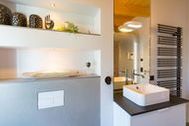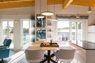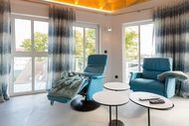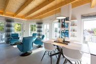 Exklusives und modernes Wohnflair mit Meerblick bietet dieses 84 Quadratmeter große barrierefreie Urlaubsparadies in seinen drei Räumen im Penthouse des Domizils Düne 8. Entspannen Sie hier mit bis zu 4 Personen und einem Kleinkind bis 3 Jahre (im Kinderreisebett). Eine hohe, offene Holzbalkendecke, stylische Designmöbel, ein moderner Gas-Kamin eine Wohlfühlwelt, in der man wunderbar abschalten kann. Eine umlaufende Sonnenterrasse mit Meerblick (ges. 33m²)lädt zum Verweilen ein. So entspannend sollte Urlaub sein! Im Inneren erwarten Sie lichte und hohe Räume. Die Ledersessel vor dem großen Flat-TV im offenen und großzügig geschnittenen Wohn-Ess-Zimmer lassen sich bequem in eine Liegeposition verstellen, so dass jeder seine eigene, kleine Relax-Area bekommt. Verbindungsglied zwischen dem Wohnbereich und der mit hochwertigen Markengeräten voll ausgestatteten Küche ist ein wunderschöner Essplatz mit stylischem Esstisch im Industriallook und bequemen Schalensesseln. Die Küche ist absolut modern mit einer freistehenden Kochinsel, High End-Kochfeld mit integriertem Dunstabzug und edlem Geschirr eingerichtet. Die beiden Schlafzimmer eines sogar mit Zugang zur großen Terrasse verwöhnen mit Behaglichkeit und viel Stauraum. Komfortable Boxspringdoppelbetten (1,80 m x 2,00 m) sorgen für Schlafvergnügen und die passgenauen Einbauschränke bieten ausreichend Ablagefläche. In beiden Zimmern gibt es einen Flat-TV. Die beiden Tageslicht-Bäder verfügen über eine Regendusche, einen Waschtisch und ein WC. Ein kleines Highlight wartet darüber hinaus zusätzlich in einem der Badezimmer auf Sie: Entspannen und genießen Sie Ihre Auszeit erst so richtig in der eigenen, Finnischen Sauna. Da freut man sich sogar auf kühlere Abende oder ungemütliche Herbst- oder Wintertage. Sie wollen auch im Urlaub im Internet surfen? Kein Problem! Das WLAN ist kostenfrei. Für Ihren Komfort sind die Betten bei Ihrer Anreise bezogen. Und auch für Ihr Auto ist gesorgt. Einen überdachten Pkw-Außenstellplatz gibt es am Haus. Außerdem gehört zu der Wohnung ein eigener Fahrradabstellraum. Ein Urlaubsdomizil mit allem Komfort, den man sich nur wünschen kann, heißt Sie im Domizil Düne 8 im Seebad Ahlbeck herzlich willkommen. Lassen Sie den Stress des Alltags hinter sich und tanken Sie in diesem schönen und modernen Ferientraum neue Energie. Auf Sie warten großzügige Zwei- und Drei-Zimmer-Appartements in exklusivem und zeitlosem Interieur Design. Zu den auszeitverschönernden Annehmlichkeiten gehören hier unter anderem Gas-Kamine, Saunen, Balkone oder Terrassen und ein Parkplatz für Ihr Auto. Viel Platz zum Aus- und Entspannen, zum Wohlfühlen und Genießen bieten die Wohnungen, aus denen Sie gar nicht wieder abreisen wollen. Hier wird der Urlaub garantiert zur schönsten Zeit des Jahres. Das WLAN ist kostenfrei. Und zu jeder Wohnung gehört ein eigener Abstellraum auf dem Hof. Für E-Autos steht auf dem Nachbargrundstück (Bergstraße 7) eine E-Ladesäule mit 2 Ladeplätzen (gesamt 22 kW) auf dem Grundstück kostenpflichtig zur Verfügung. Diese kann bei Bedarf mit genutzt werden.