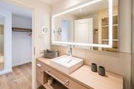 Von der Sonne verwöhnt wird dieses wunderschöne, 66 Quadratmeter große Appartement im 3. Obergeschoss. Schon direkt nach dem Aufstehen können Sie auf dem Balkon nicht nur die Morgensonne, sondern auch den Blick auf die glitzernde Ostsee genießen. Schöner kann der Urlaubstag doch nicht beginnen. Hell und sonnendurchflutet sind auch die drei Räume Ihres Urlaubsdomizils. Exklusivität und modernes Wohndesign treffen hier auf Leichtigkeit und Behaglichkeit. Ausgesuchte Design-Möbel, ein Bose-Soundsystem, das über das Handy bedienbar keine Klangwünsche offen lässt, ein Gas-Kamin, der auf Knopfdruck eine wohlige Kuschelatmosphäre verbreitet die Liste an besonderen Annehmlichkeiten, die dieses Appartement zu bieten hat, ist lang. Das offene Wohn-Esszimmer verfügt über einen riesigen Flat-TV, eine gemütliche Sofa-Sitzgruppe mit Schaukelstuhl, einen schönen, großen Esstisch und eine voll ausgestattete Küche. In dieser werden begeisterte Kochherzen höher schlagen. Denn hochwertige Markengeräte, edles Geschirr von ASA, eine von drei Seiten zugängige Kochinsel alles in modernem und zeitlos schlichtem Design warten nur darauf, dass sie damit ihre kreativen Gaumenfreuden in die Tat umsetzen. Die beiden Schlafzimmer sind mit bequemen Boxspringdoppelbetten (1,60 x 2,00), ablagefreudigen Schränken, Flat-TV und einem Zugang zum umlaufenden Süd-Ost-Balkon ausgestattet. Lassen Sie sich einfach fallen. Den Rest erledigt die wunderbare Wohlfühlatmosphäre. In zwei Bädern können sich Auszeithungrige frisch machen. Beide Badezimmer besitzen geräumige Regen-Duschen, einen großzügigen Waschtisch und ein WC. Wellness-Highlight des Masterbades ist eine Panoramasauna, die eine ganz private Entspannungsauszeit an kühlen Tagen oder Abenden erlaubt. In der Wohnung gibt es einen kleinen Abstellraum mit einem Waschtrockner. Bei uns wird Rundum-sorglos groß geschrieben. Darum sind bei Ihrer Anreise die Betten bezogen und Handtücher liegen für Sie bereit. Zudem ist das WLAN in der Wohnung kostenfrei. In der hochmodernen Tiefgarage ist für Sie der Pkw-Stellplatz Nr. 21 reserviert.