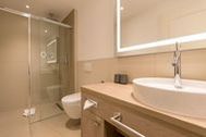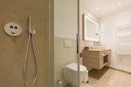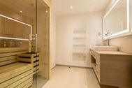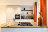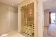 Von hier oben aus dem dritten Stock haben Sie das Meer voll im Blick. Im Panorama-Blick. Näher dran am Meeresrauschen geht nicht. Zum Wohlfühlen, Aufatmen, Auftanken sind die 74 Quadratmeter dieses Urlaubstraums ideal. Drei stilvoll und elegant eingerichtete Zimmer und modernes Interieur-Design erwarten Sie und bis zu drei Mitgenießer und ein Kleinkind bis drei Jahre (im Kinderreisebett). Das Wohnzimmer und zwei Balkone geben den Blick auf das grenzenlose Blau frei. Genießen Sie schon morgens, direkt nach dem Aufwachen die glitzernde Morgensonne auf den schaumgekrönten Wellen. Beide Schlafzimmer haben nicht nur wunderbar bequeme Boxspringdoppelbetten (einmal 1,80 m x 2,00 m [&] und einmal 1,60 m x 2,00 m), sie haben auch Zugang zu jeweils einem der beiden Balkone (6 und 8 Quadratmeter groß). So beginnt schon der erste Urlaubsmoment des Tages mit Ostseeweite. Ein helles und geräumiges Wohn-Ess-Zimmer lädt zum Relaxen auf der Couch, zum gemeinsamen Essen am wunderschönen Esstisch, zum Flammenspielschauen im Kamin oder zum gemeinsamen Kochen in der offenen Küche ein. Die hat es übrigens in sich. Die freie Kochinsel wird zum geselligen Urlaubszentrum. Hochwertige Markengeräte erleichtern das Kochen. Edles Geschirr macht das anschließende Essen zum wahren Genuss auch für die Augen. Ein großer Flat-TV und eine Bose-Hi-Fi-Anlage mit Bluetooth sorgen für die richtige Unterhaltung. Auch in den beiden Schlafzimmern gibt es jeweils einen Flat-TV. Das Appartement verfügt über zwei Bäder. Modernes Design zeichnet auch hier die Ausstattung aus. Eine große Regendusche macht das Duschen zum Highlight. Ein großer Waschtisch mit hinterleuchtetem Spiegel und ein WC gehören ebenfalls zur Einrichtung eines jeden Bades. Wahrer Wellness-Luxus wartet auf Sie im Masterbad: Eine Finnische Sauna hilft Ihnen an kühlen Tagen dabei, sich rundum kuschelig warm zu fühlen. Entspannung kommt in diesem Urlaubsdomizil dann ganz von allein. In einem kleinen Hauswirtschaftsraum steht ein Wasch-Trockner zu Ihrer Verfügung. Kommen Sie also an und lassen Sie sich einfach fallen. Die Betten sind bezogen und Handtücher liegen für Sie bereit. Das WLAN ist kostenfrei. Und in der Tiefgarage ist für Sie der Stellplatz Nr. 20 reserviert.