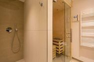 Ein Kuschelreich für Zwei mit viel Platz zum Leben, Lieben und Loslassen ist das 51 Quadratmeter große Urlaubsparadies im 1. Oberschoss des Beachhouses. Eleganz und Stil durchzieht das Zwei-Raum-Appartement vom Eingang bis hinaus auf den Balkon. Denn vom Innenarchitekten konzipiert, strahlt es viel Ruhe und Harmonie aus. Kommen Sie runter, schalten Sie ab und genießen Sie den seitlich eingeschränkten Blick zur Ostsee vom Balkon aus. Durch die bodentiefen Fenster können Sie das Meer auch im Inneren rauschen hören. Die Einrichtung ist stylisch und exklusiv. Von der Stange ist hier nichts. Die hochwertigen Design-Möbel, Lampen und Accessoires machen Ihre Auszeit zu etwas ganz Besonderem. Denn oberstes Gebot in diesem Paradies ist Wohlfühlen. Ob auf dem bequemen Sofa oder am Esstisch jeder Atemzug wird zur Entspannung. Auch den geliebten Vierbeiner können Sie hier mitbringen. Denn Haustiere sind erlaubt. Ein schöner Gas-Kamin sorgt per Knopfdruck für Romantik. Kochen Sie gemeinsam in der voll ausgestatteten Küche, die zum Wohnzimmer hin offen ist. Mikrowelle, Herd, Kühlschrank, Kaffeemaschine, Geschirrspülmaschine alles steht zu Ihrer Verfügung. Edles Geschirr gibt den passenden Rahmen für feine Gerichte oder gar Mehr-Gang-Menüs. Im Wohnzimmer wie auch im Schlafzimmer befindet sich ein Flat-TV. Zudem gibt es eine Hi-Fi-Anlage mit Bluetooth. Ins Internet kommen Sie kostenlos. Auch die Nächte werden in dem Appartement zum erholsamen Vergnügen. Dafür sorgt das urgemütliche Boxspringdoppelbett (1,80 m x 2,00 m). Viel Platz zum Verstauen der Urlaubsgarderobe haben Sie im Schrank. Im geräumigen Badezimmer erwartet Sie sogar noch eine Finnische Sauna. Da wird der Urlaub zur echten Wellness-Auszeit. Regendusche, Waschtisch und WC gehörend selbstredend ebenfalls zur Badausstattung dazu. In einem Hauswirtschaftsraum finden Sie einen Wasch-Trockner. Für eine rundum sorglose Auszeit ist alles für Sie bereitet. Die Betten sind frisch bezogen und Handtücher liegen bereit. In der modernen Tiefgarage ist für Sie der Stellplatz Nr. 7 im Doppelparker oben (max. Höhe 2,00 m, max. Länge 5,10 m, max. Breite 2,50 m, max. Last 2.600 kg) reserviert.