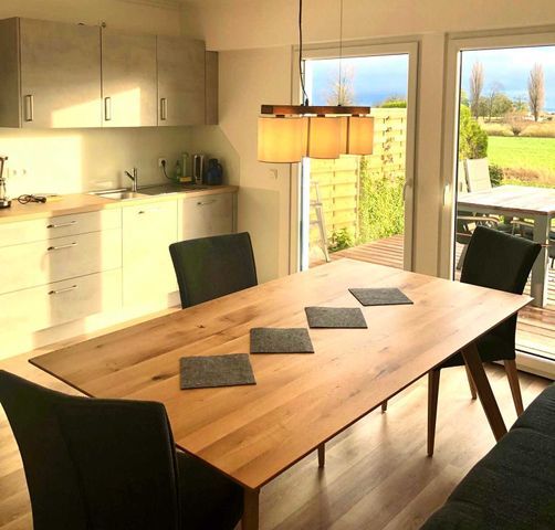 Dieses geschmackvoll gestaltete Ferienhaus umfasst eine Wohnfläche von ca. 87 m² und bietet mit 4 Zimmern (davon 2 separate Schlafzimmer) genügend Platz und Komfort für bis zu 4 Personen. Die Einrichtung ist zeitlos, lässig und modern mit maritimem Flair. Vom Windfang über den anschließenden Flur gelangen die Gäste in die offen gestaltete Wohnküche mit einer gut ausgestatteten Küchenzeile. Der große Esstisch lädt zum Verweilen, Essen und Spielen ein. Von der Küche und dem Wohnzimmer hat man über die Türen in den großen Glasfronten Zutritt zur Süd-Terrasse. Hier genießen unsere Gäste den morgendlichen Kaffee mit einer frischen Ostseebrise in der Nase oder man lässt schöne Urlaubstage entspannt mit der tollen Aussicht auf die Ostsee ausklingen. Ein Badezimmer mit bodentiefer Walk-in Dusche macht es unseren Gästen bequem. Ein kostenfreier WLAN-Anschluss steht zur Verfügung. Zu diesem Feriendomizil gehört ein PKW-Außenstellplatz. Wir bitten um Verständnis, dass es sich bei diesem Ferienhaus um ein Nichtraucherdomizil handelt. Haustiere sind hier leider nicht erlaubt.