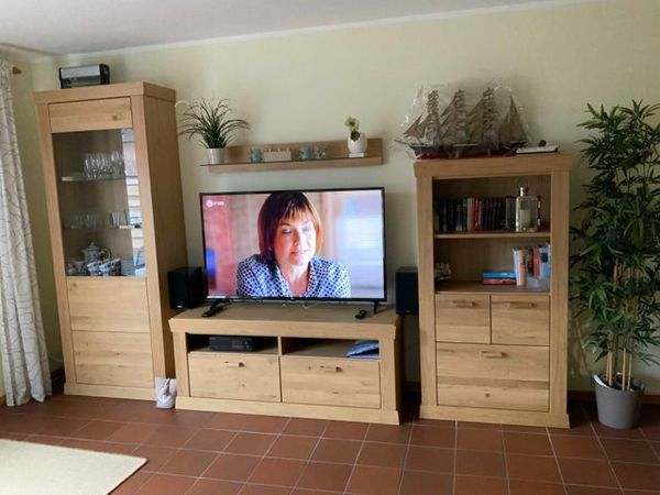 bequeme Wohnzimmergarnitur, Tisch, Schränke, Farb-TV mit Sat-Anlage, Stereo-Anlage, W-LAN, Diverses